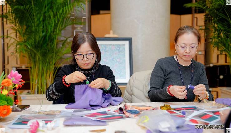 最后的亲子手作环节,是雅集最温馨的时刻,家长与孩子们一同体验秦汉纳纱锦服饰元素的DIY制作。指尖穿梭间,古老的纹样与现代的巧思交织,不仅复刻出一份份充满古意的雅趣作品,更在协作与互动中,悄然完成了一场关于美与传统的情感传递。
