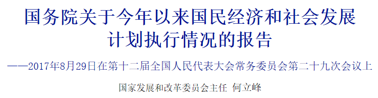 2017年8月29,第十二届全国人民代表大会常务委员会第二十九次会议上,国务院向全国人大常委会作《国务院关于今年以来国民经济和社会发展计划执行情况的报告》。