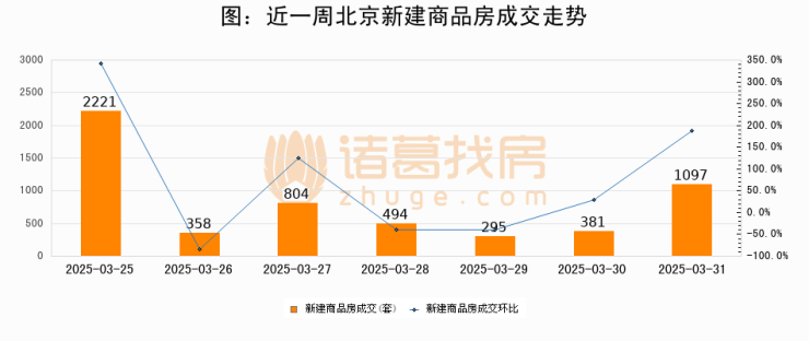 【北京成交日报】03月31日新房成交1097套、二手房1470套;涨价房源84套