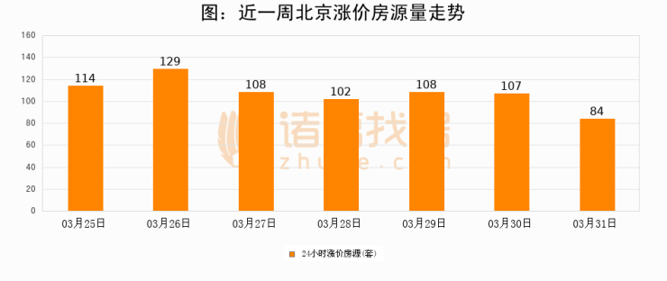 根据诸葛找房数据显示,北京24小时涨价房源量为84套,较03月30日减少23套,环比下降21.5%。与此同时,涨价房源占比小幅回落,对于购房者来说是一个入市窗口期,购房者可抓住时机入市。