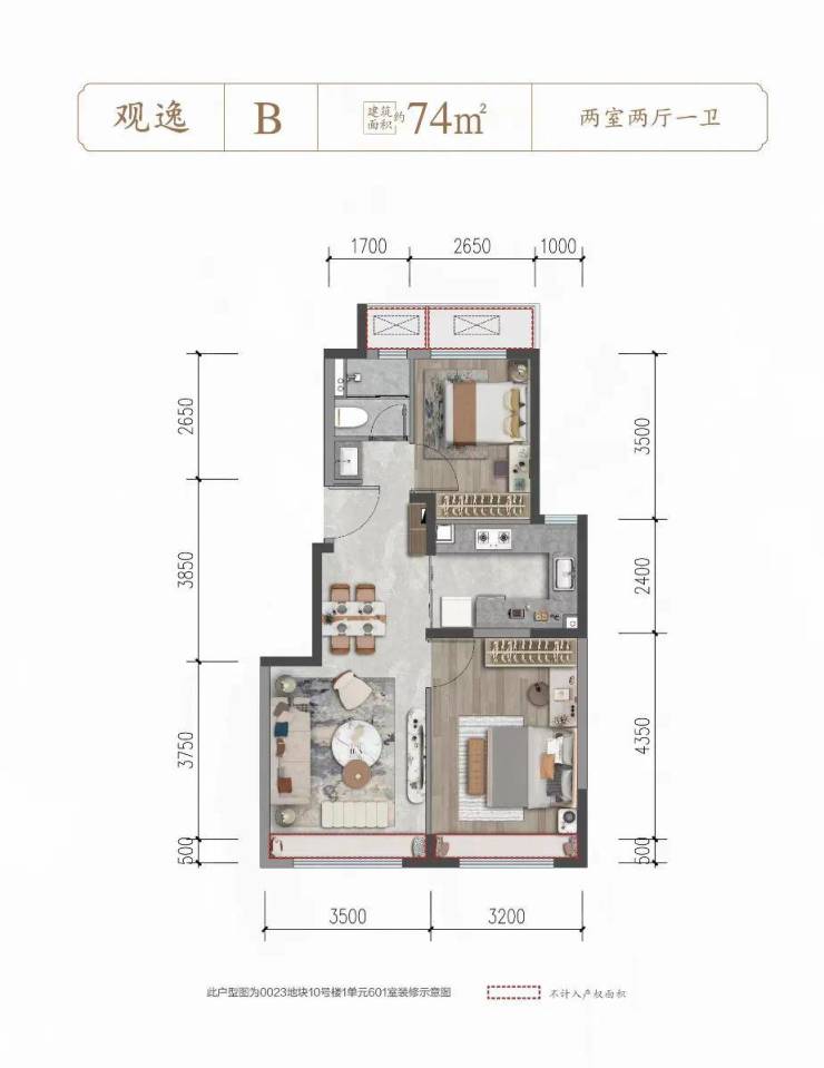 约74平两居据说剩余非常少,跟64平比,面宽更宽,卫生间三分离,北侧送面积更大。