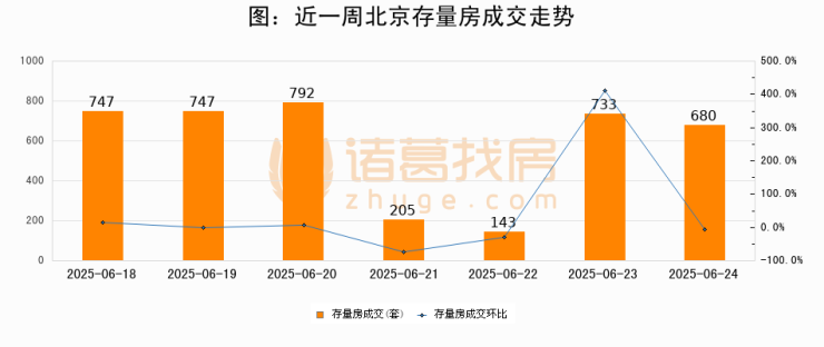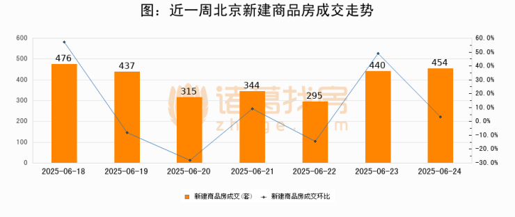 【北京成交日报】06月24日新房成交454套、二手房680套;涨价房源78套