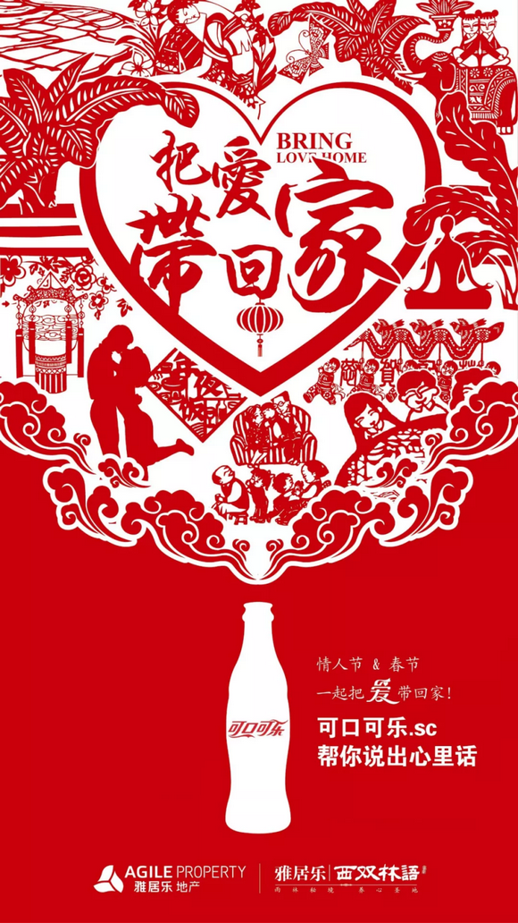 雅居乐·西双林语与可口可乐的跨界联合,不仅为含蓄内敛的我们开启爱的表达通道,同时也彰显出一种新锐的生活态度,实现了品牌上的跨界营销,开辟出一条崭新的传播通道,这或将成为尝试探索品牌跨界的未来发展趋势。