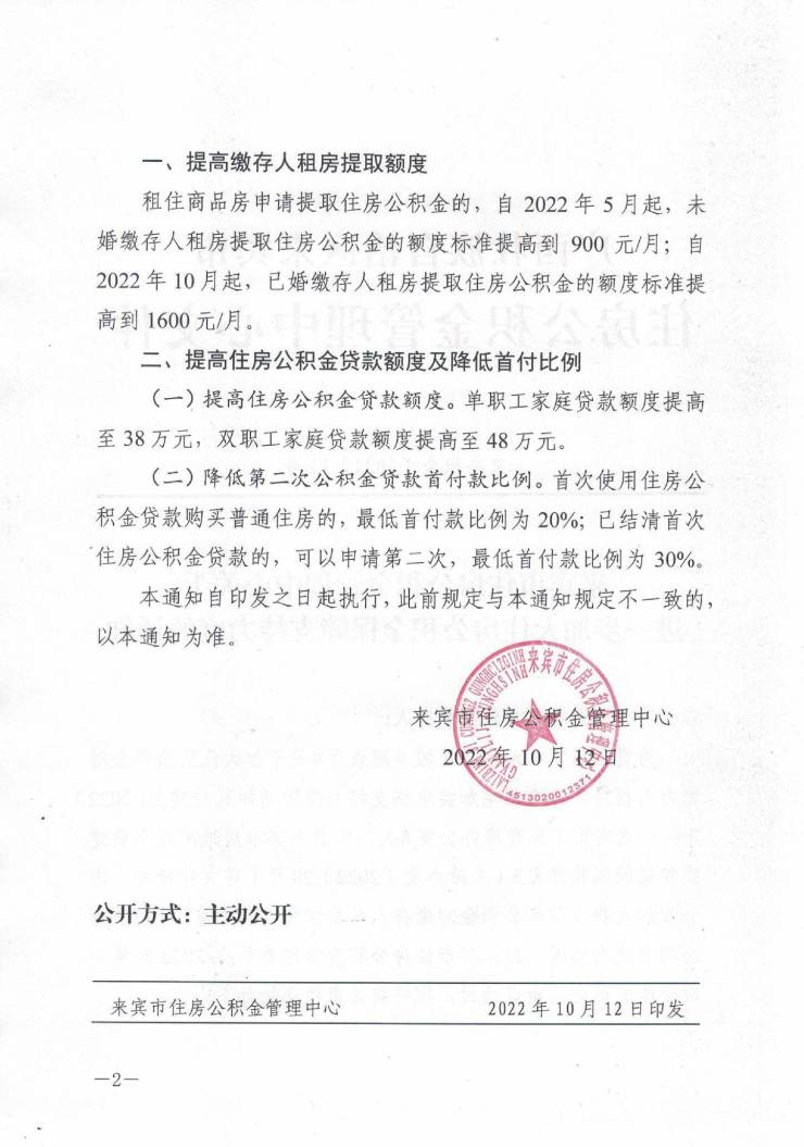 10月13日,广西壮族自治区来宾市住房公积金管理中心发布《来公积金〔2022〕11号 关于进一步加大住房公积金保障支持力度的通知》(以下简称“《通知》”)。