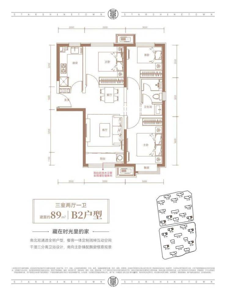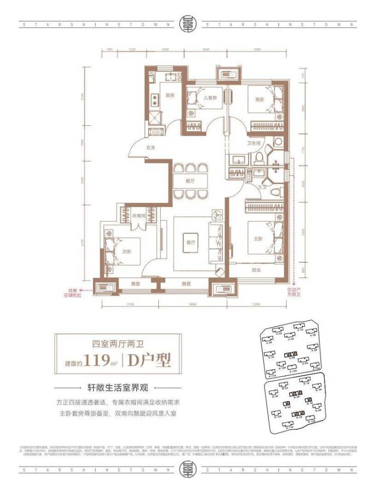 项目打造四种户型供刚需选择,约78平两居、约89平三居、约113平三居、约119平四居。