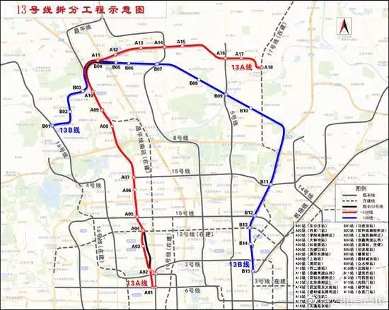 北京地铁13号线将拆为A/B线