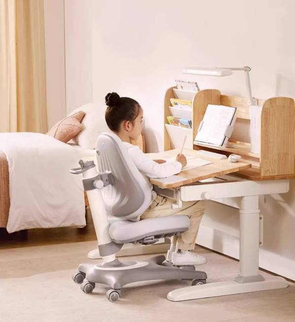 2.给孩子准备专业健康学习桌椅,辅助孩子正确坐姿,坐得正、坐得久。