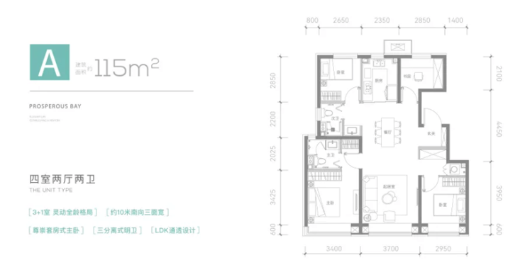 建面约115㎡一步到位的宝藏大四房,阳光三面入室,大面宽的“超画幅”视野。南向双卧连接南向双飘窗,让自然景致成为朝夕的装饰。
