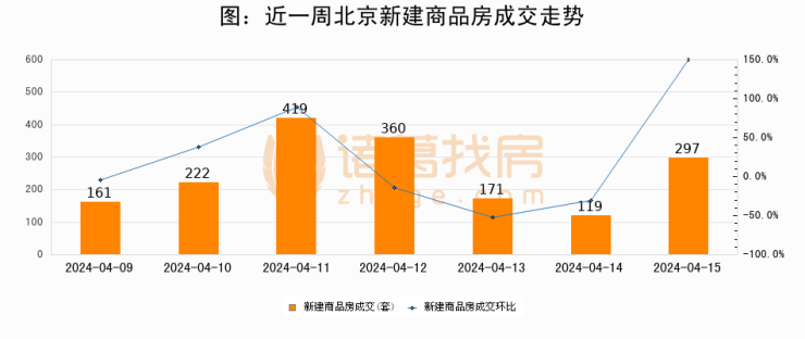 【北京成交日报】04月15日新房成交297套;涨价房源197套