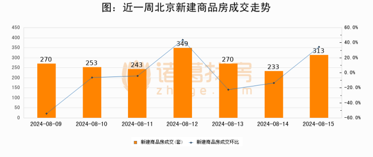 【北京成交日报】08月15日新房成交313套、二手房609套;涨价房源178套