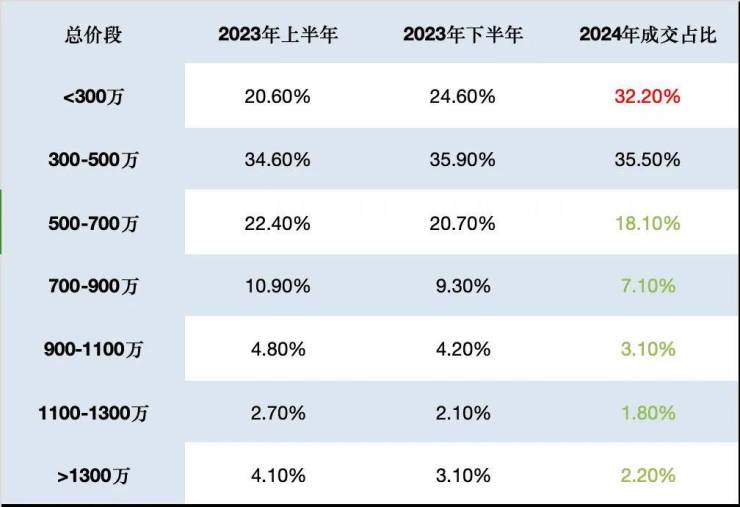 也是北京近半年唯一成交量占比上涨的价格段。