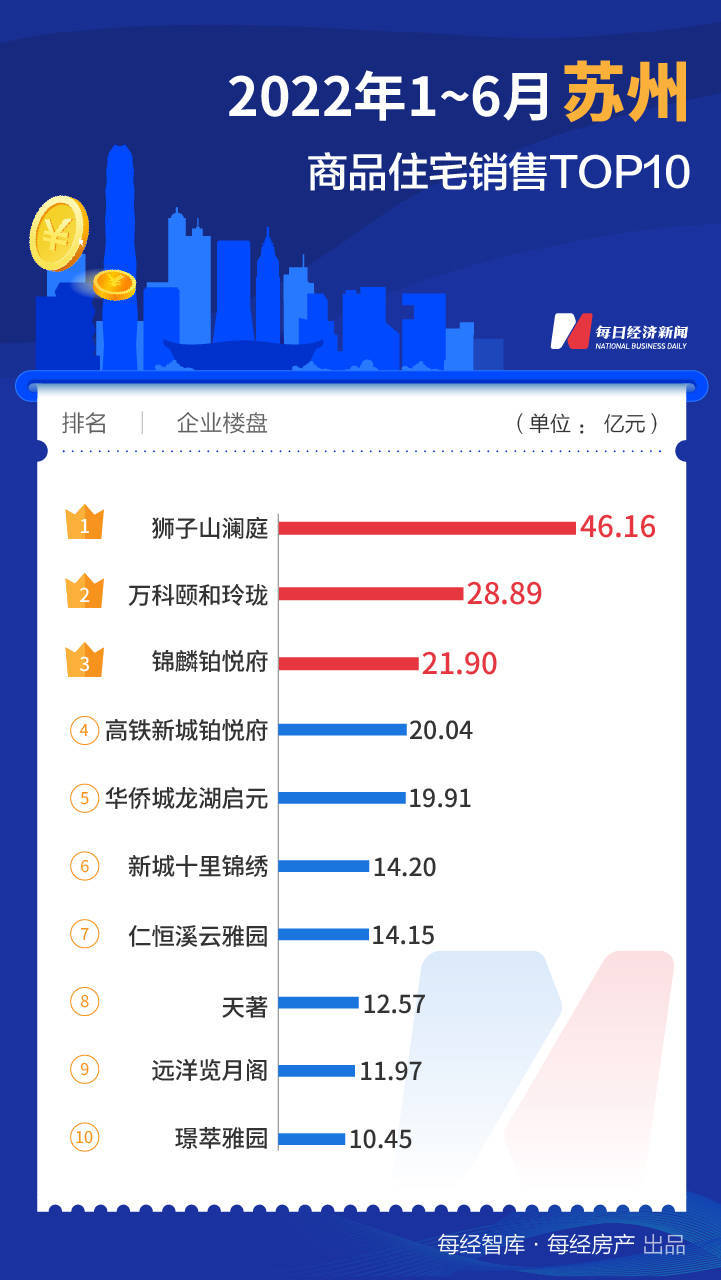 上海成为单月销售最热城市,TOP10项目在6月份卖出了近200亿元,其中新开盘的“瑞虹新城·瑧庭”售出96.46亿元,“仁恒海上源”超48亿元,“珠江安康苑”开盘销售近60亿元。