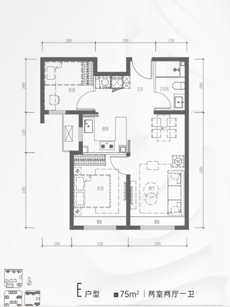 最近在整理资料的时候不禁感慨,现在的户型做的真是越来越好了。大户型就不用说了,四叶草经典户型、大面宽、落地窗、标配阳台、主卧套房等全都给配上,十分注重收纳空间以及动线的合理性规划,让人挑不出毛病。其实不光是大户型,即使是两居室的小户型也在迭代。以前,很多小户型被认为是“边角料”,东西向、刀把户型都很常见,稍好一些的会给做成纯南向两居室,类似下边这种: