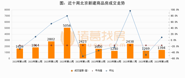 【北京成交周报】第19周新房成交1394套,二手房2958套,涨价房源637套