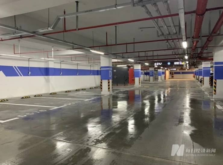 地下车库整体整洁明亮,车库与电梯间的大门标识清晰、装饰有灯带,车库部分区域有返潮情况,水痕明显。此外,部分楼栋外立面仍然存在色差、不平整等近年来的楼盘通病。