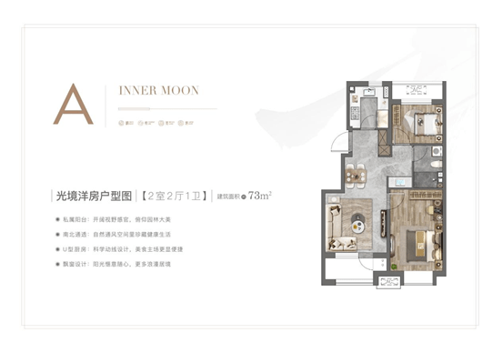 中建·京西印玥,一步步成就精良品质的兑现。建筑面积约73m²经典两居空间,南北通透,LDK宽敞布局,U型厨房。在这里,或是家人欢乐共聚,或静赏春华秋实,处处是生活和阳光的美好和鸣。