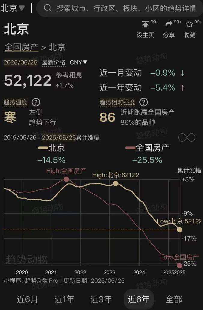 有机构统计北京5月二手房均价较4月下跌0.9%。