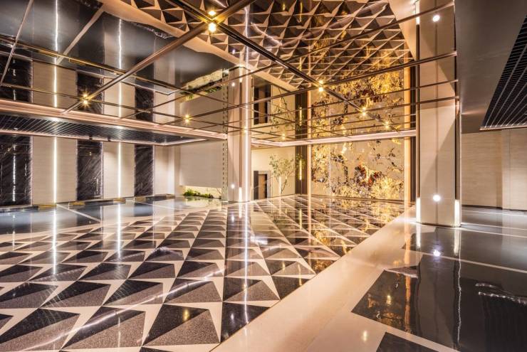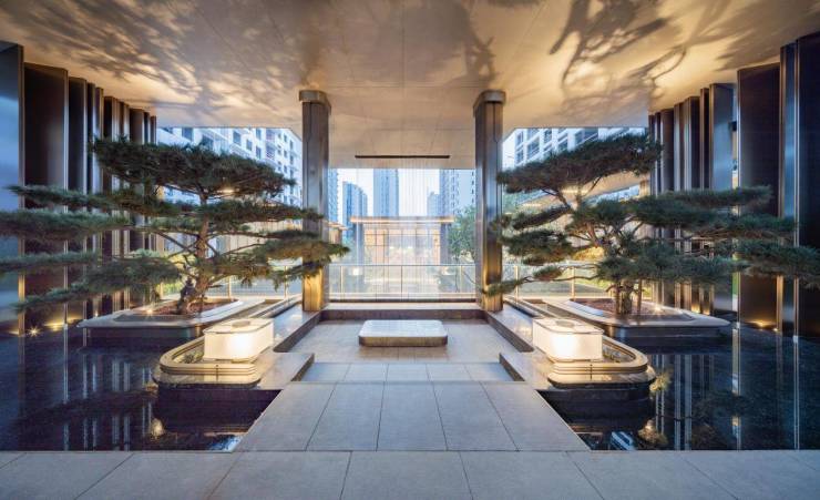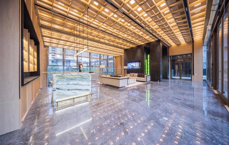 从设计、选材到服务,无不蕴藏中建·玖玥府的匠心与巧思。比如,在社区大门处,中建·玖玥府便设计了酒店式落客大堂,通过前庭港湾式环岛,将展示、服务、功能等高效整合。地面极简水景所运用的石材都是逐块拼接以达到形似鳞片的效果,增强“鲲鹏遨游天地之间”的自由感。