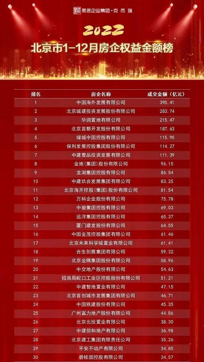 北京楼市2022成绩单:豪宅卖的好,中海第一,建发和中建系表现亮眼
