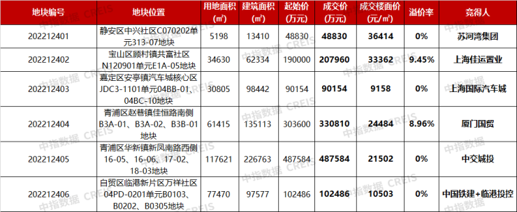据悉,本次出让地块中包括3宗纯宅地,3宗混合用地,涉及静安区、宝山区、嘉定区、青浦区、临港等5个区域,总起拍价为122.27亿元。其中,静安区中兴社区地块、嘉定区安亭镇汽车城核心区地块、青浦区华新镇新凤南路西侧地块以及自贸区临港新片区万祥社区地块等4幅地块因仅一名竞买人报名,以底价成交;宝山区顾村镇共富社区地块以及青浦区赵巷镇佳恒路南侧地块等2幅地块获得多名竞买人报名,进入现场竞拍环节。