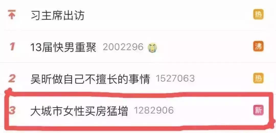 同时,一条#大城市女性买房猛增#的话题也占据了微博热搜。该话题的阅读量3.7亿,讨论量达8.2万。