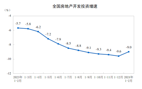 今年前两月,全国房地产开发投资11842亿元,同比下降9.0%(按可比口径计算)。其中,住宅投资8823亿元,下降9.7%。