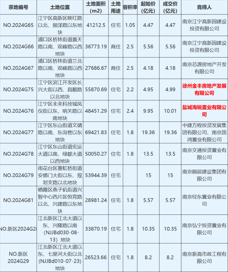 南京11宗住宅用地成功出让:收金101.19亿元,2宗溢价成交