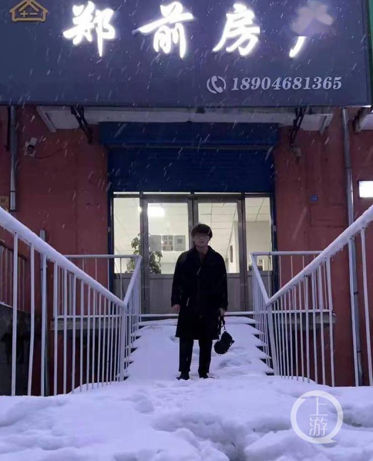 ▲从购房者变卖房者,郑前和他身后的郑前房产中介公司。图片来源/受访者供图