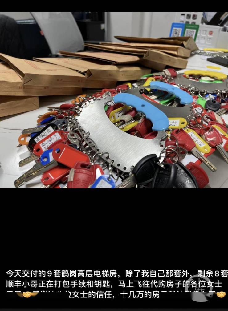 ▲郑前在同一天发出8套房屋房本和钥匙,通过快递发往全国各地。图片来源/受访者供图