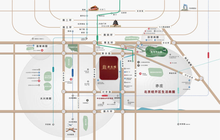 规划九年一贯制学校紧邻地块、地铁8号线近在咫尺、规划S6周边建站、近守北京最大湿地公园南海子公园、成熟商圈环绕……“学铁商”成熟配套,步行距离即可享受。