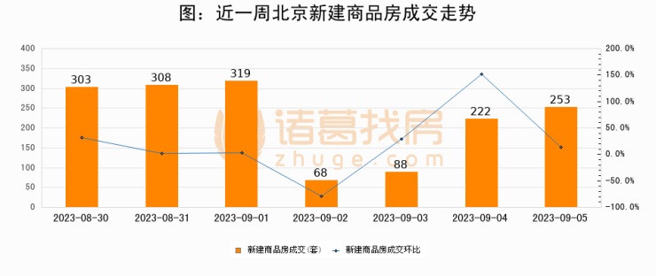 【北京成交日报】09月05日新房成交253套、二手房449套;涨价房源607套