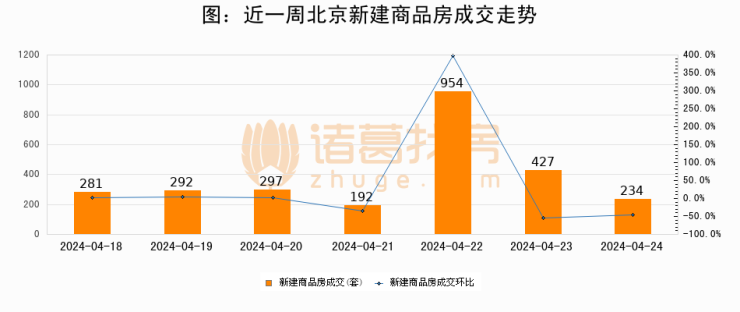 【北京成交日报】04月24日新房成交234套、二手房684套;涨价房源107套