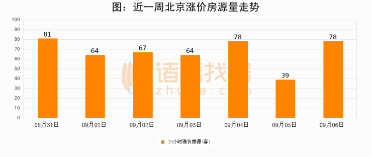 根据诸葛找房数据显示,北京24小时涨价房源量为78套,较09月05日增加39套,环比上涨100%。与此同时,涨价房源占比小幅扩大,业主信心有所提升。