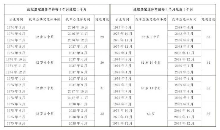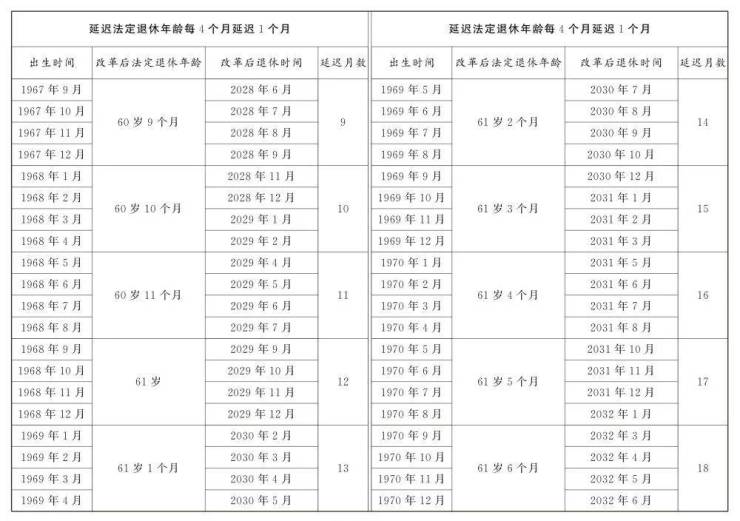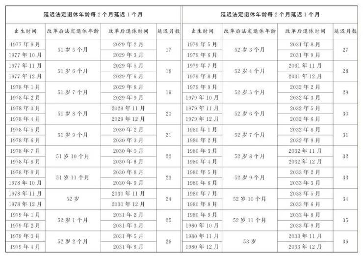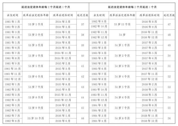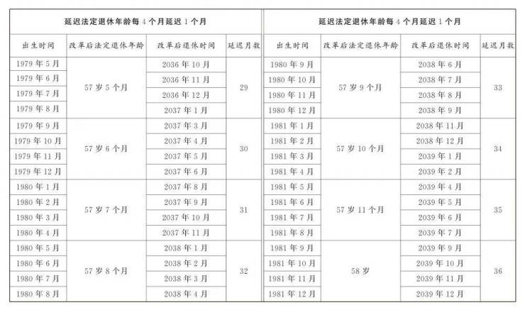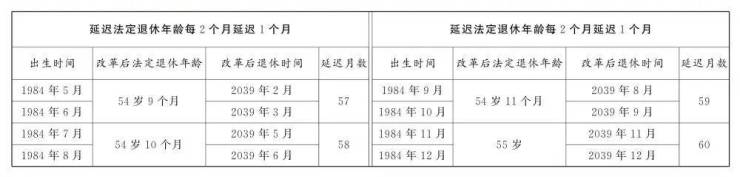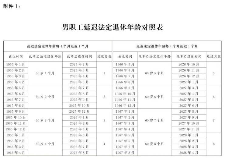 1.男职工延迟法定退休年龄对照表