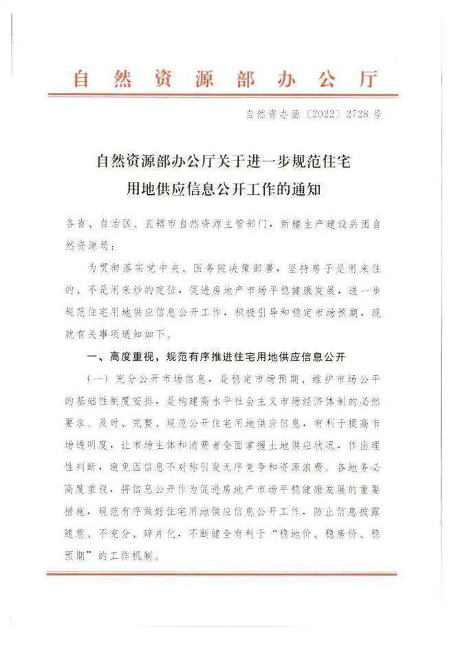 近日,网传自然资源部出台《关于进一步规范住宅用地供应信息公开工作的通知》(以下简称《通知》),其中对住宅用地出让公告不再要求“全年不超过3次”。该文件未在官网公开,文件落款日期为2022年12月8日,部分媒体将此解读为今年22城将取消集中供地制度。