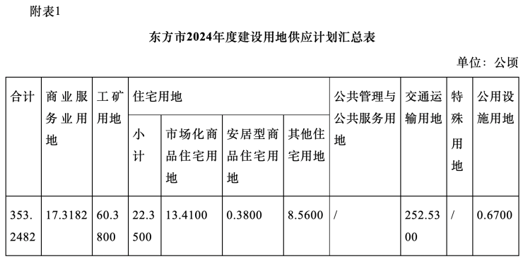 农村集体经营性建设用地供应总量根据东方市各乡镇人民政府上报的项目地块需求进行供应,同时经征求东方市各乡镇人民政府意见,本年度东方市农村集体经营性建设用地供应总量为9.55公顷,共3宗商服用地。