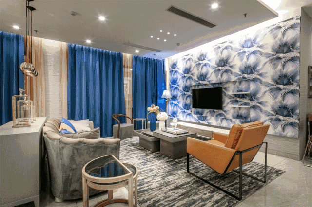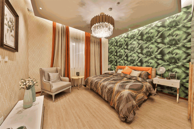 谁说混搭是时尚界的特权? 家居也能个性混搭出新风潮! 只有你想不到,没有你看不到! 客厅和餐厅以英国的 纱线植物纤维纹理壁布赚足眼球, 搭配东西方古典家具和单品, 有一种推开门就是异国的感觉,hin有腔调。 卧室和书房主打丛林主题墙纸系列, 意大利时尚金属吊灯、皮质家具、大理石瓷砖、手工物品 每一处