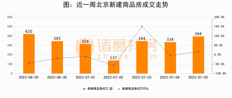 【北京成交日报】07月05日新房成交394套、二手房493套;涨价房源111套
