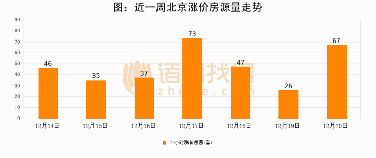 根据诸葛找房数据显示,北京24小时涨价房源量为67套,较12月19日增加41套,环比上涨157.7%。与此同时,涨价房源占比小幅扩大,业主信心有所提升。