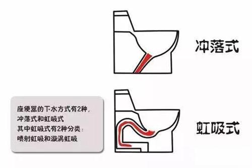马桶选购要视乎排污方向。如果是后排式,要选购冲落式马桶,其借助水的冲力直接将污物排出。冲落式的排污口较大较深,借助冲洗水的冲力直接将污物排出,其缺点是冲水声音大。如果是下排式,应该选购虹吸式马桶。虹吸式细分有两种,包括喷射虹吸和漩涡虹吸。虹吸式的原理是借冲洗水在排污管内形成虹吸作用,将污物排出,其排污口较小,使用起来噪音小,较为安静。缺点是用水量大,一般6升储存量一次用完。