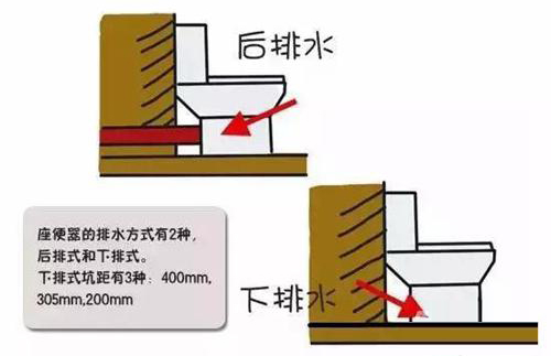 后排式也叫墙排式或横排式,根据字面意思可以得知其排污方向。后排式马桶选购时要考虑排污口中心离地面的高度,这个一般为180mm;下排式也叫地排式或竖排式,顾名思义,是指排污口在地面的马桶。