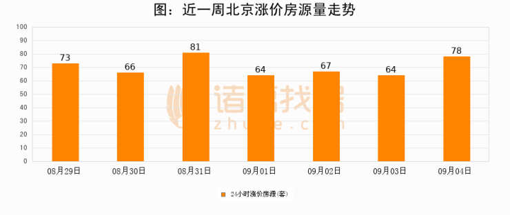 根据诸葛找房数据显示,北京24小时涨价房源量为78套,较09月03日增加14套,环比上涨21.9%。与此同时,涨价房源占比小幅扩大,业主信心有所提升。
