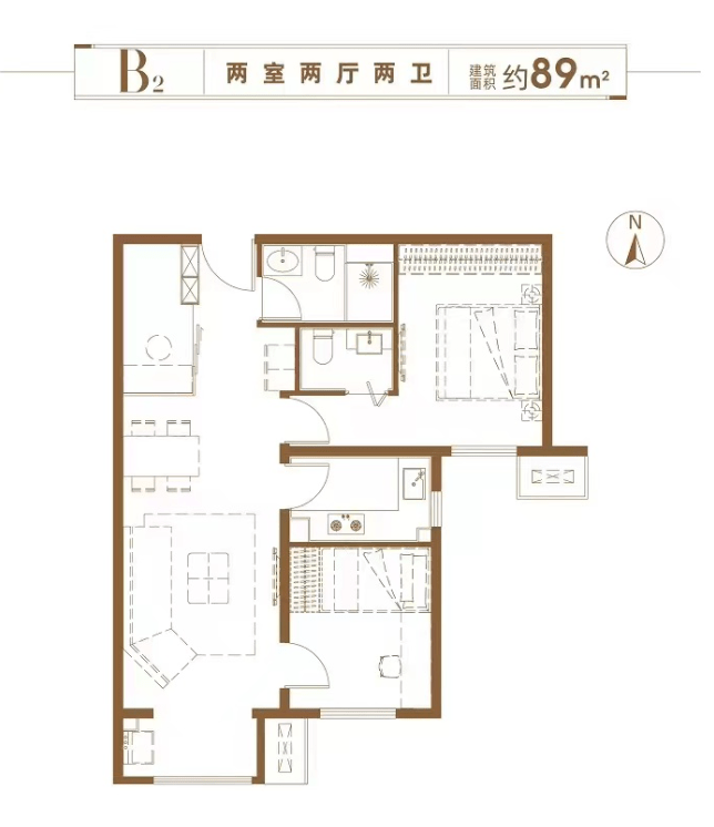 套型主要为约55-63平方米一居、约77-89平方米两居、约83-90平方米三居等。