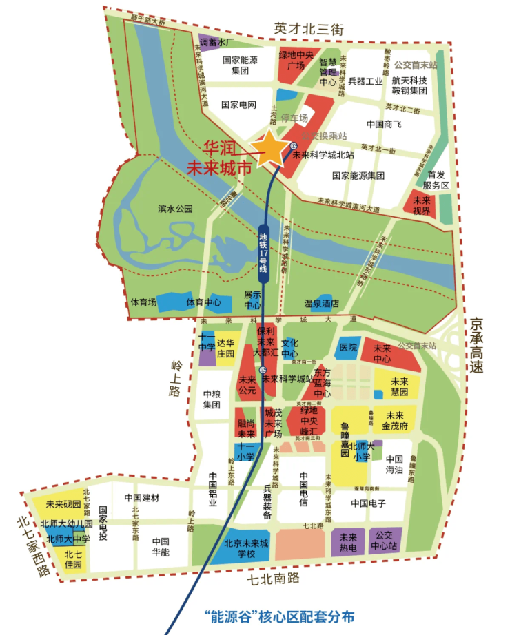 项目位于昌平区北七家镇未来科学城南区,距离17号线未来科学城南区站3公里左右,周边有北师大附属幼儿园、北师大实验小学(未来科学城学校)、北师大二附中,预计将要引进北师大一幼、北京十一学校(小学)等。居住用地整体容积率约1.5,绿地率约30%,建筑密度约19%。