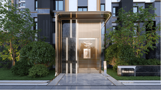 建筑立面采用业界卓越设计团队的审美,融合现代精工设计风格,以蓝钻石材+质感铝板+真石漆多种材料搭配,塑造光幕美宅,时尚格调与尊贵感油然而生。