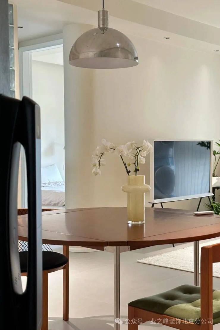 小户型的房子,每个空间都很逼仄,不妨试试把两个相邻的空间打通,实现“1+1>2”的空间。比如开放式厨房,把厨房与餐厅打通,餐厅与厨房的动线共享,实现了更宽裕的操作动线,同时又让原本狭小的厨房变成更开阔的空间。