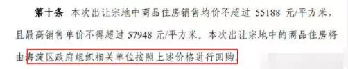“本次出让宗地中的商品住房将由海淀区政府组织相关单位按照上述价格进行回购。“