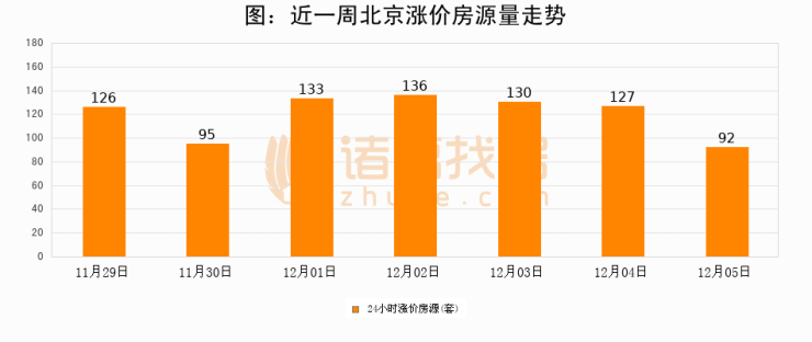 根据诸葛找房数据显示,北京24小时涨价房源量为92套,较12月04日减少35套,环比下降27.6%。与此同时,涨价房源占比小幅回落,对于购房者来说是一个入市窗口期,购房者可抓住时机入市。