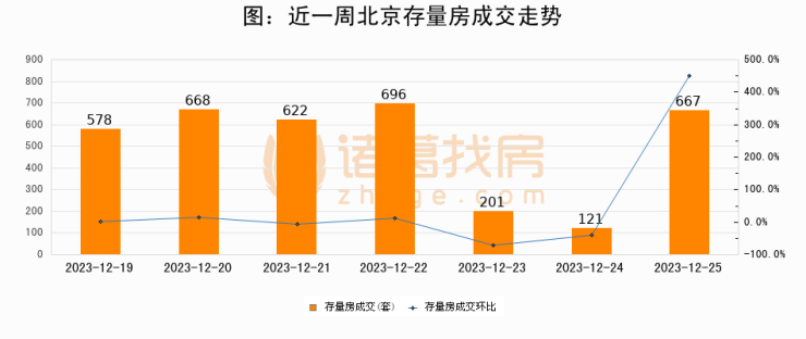 【北京成交日报】12月25日新房成交621套、二手房667套;涨价房源124套