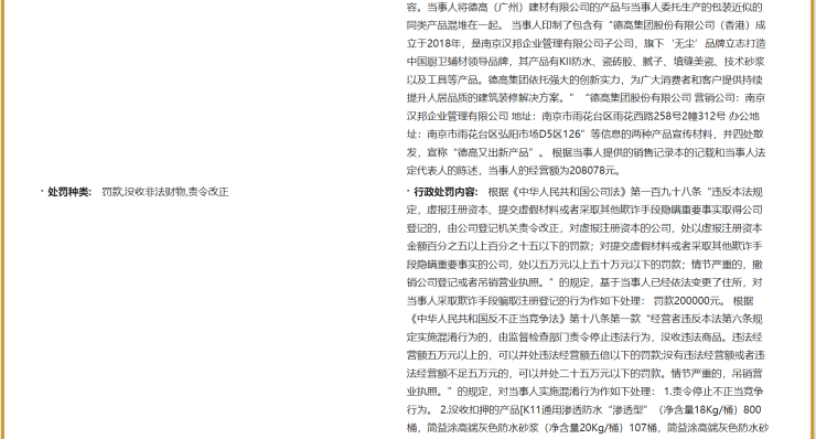 此外,2022年,南京市雨花台区市场监督管理局也对陆某仁控制的南京汉邦企业管理有限公司做出行政处罚(雨市监处罚〔2022〕70160号),认定其存在“引人误认的混淆行为”,处以罚款80万元并没收侵权产品。